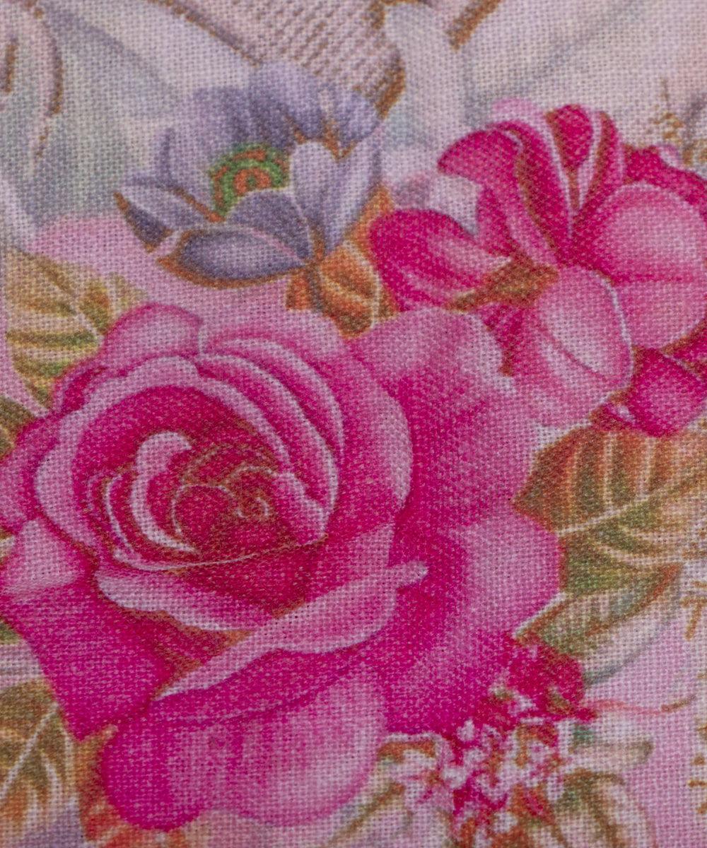 Pink Colour Floral Design Cotton Digital Print Fabric