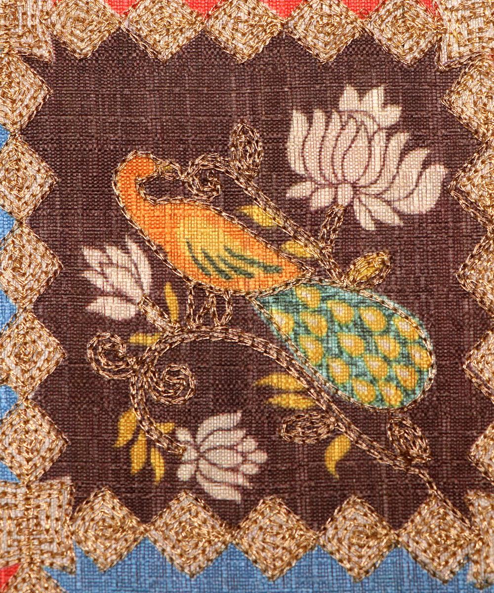 Blue Colour Animal Print Zari Embroidery Phantom Raw Silk Fabric