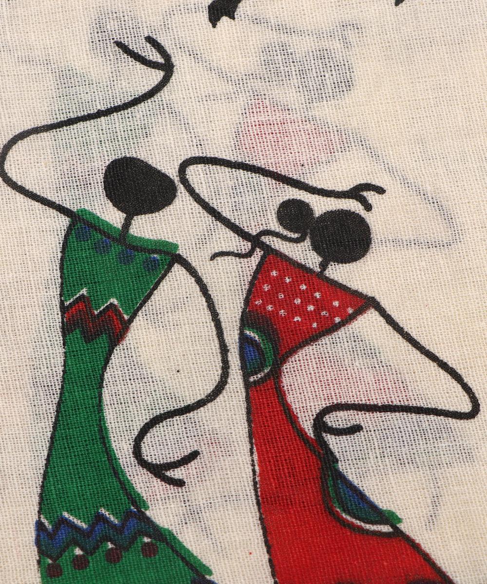 Green Colour Warli Print Cotton Fabric