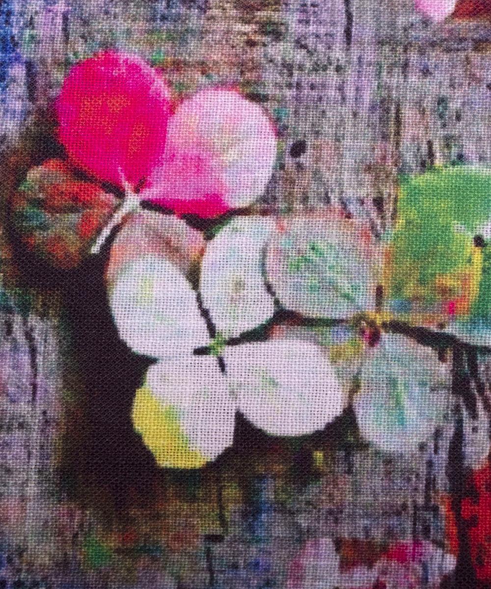 Grey Colour Floral Design Cotton Digital Print Fabric