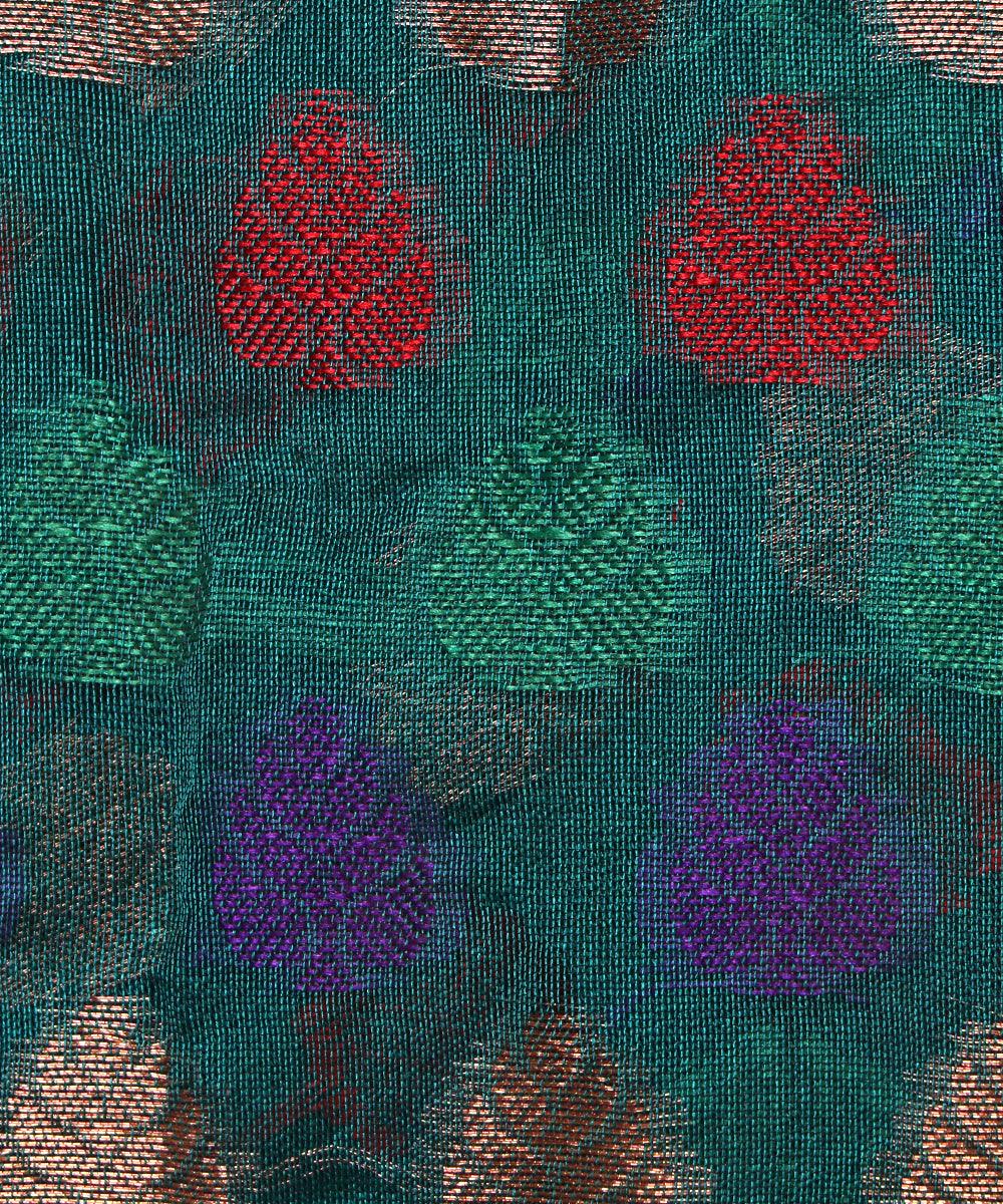 -70%Dark Green Colour Tree Design Chanderi Brocade Silk Fabric—