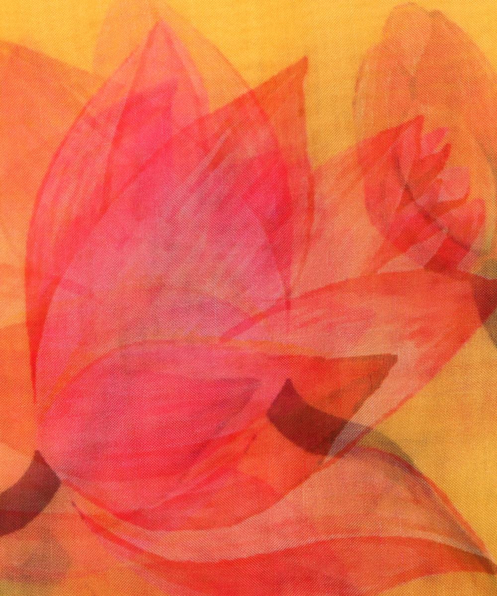 Yellow Colour Floral Organza Silk Fabric