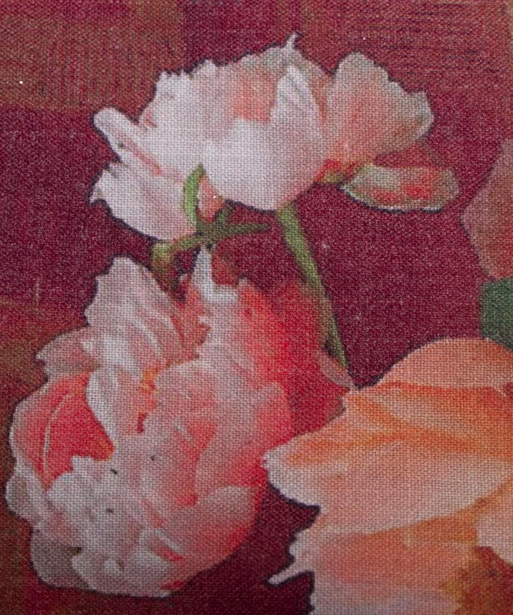Brown Colour Floral Design Cotton Digital Print Fabric