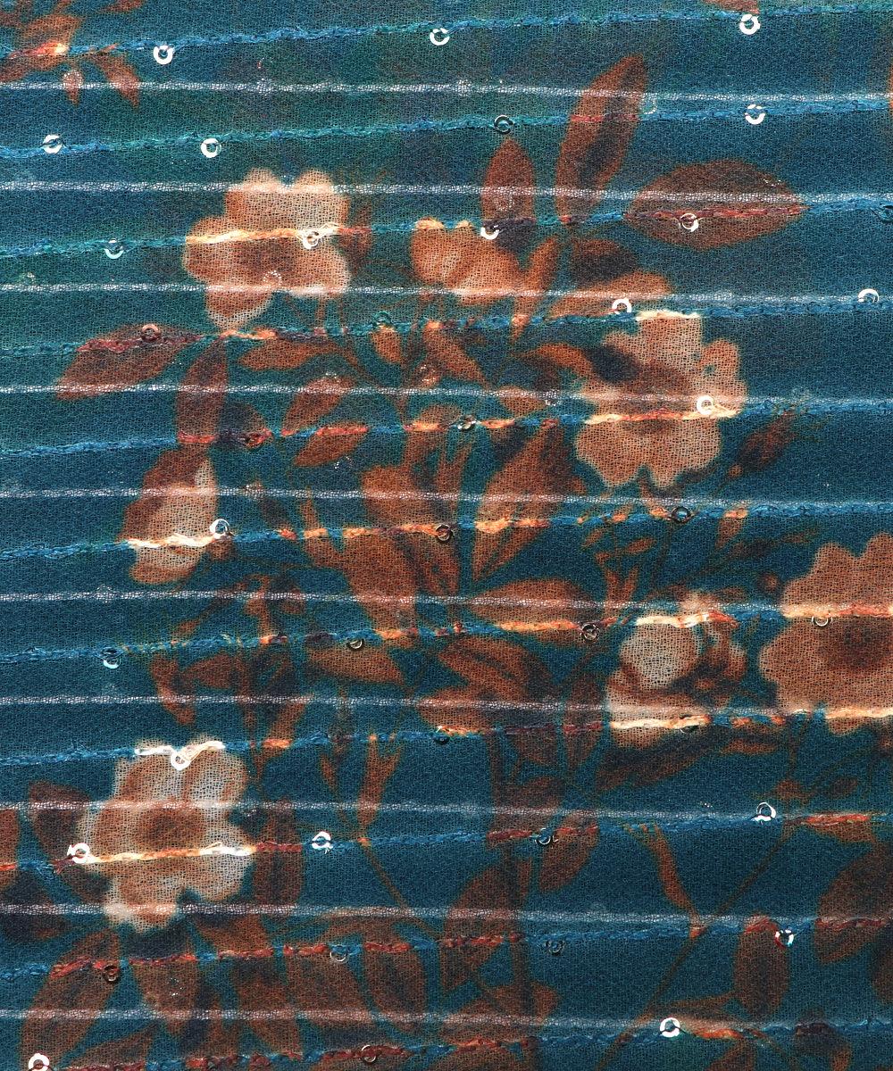 Teal Blue Colour Digital Print Georgette Sequin Embroidery Fabric