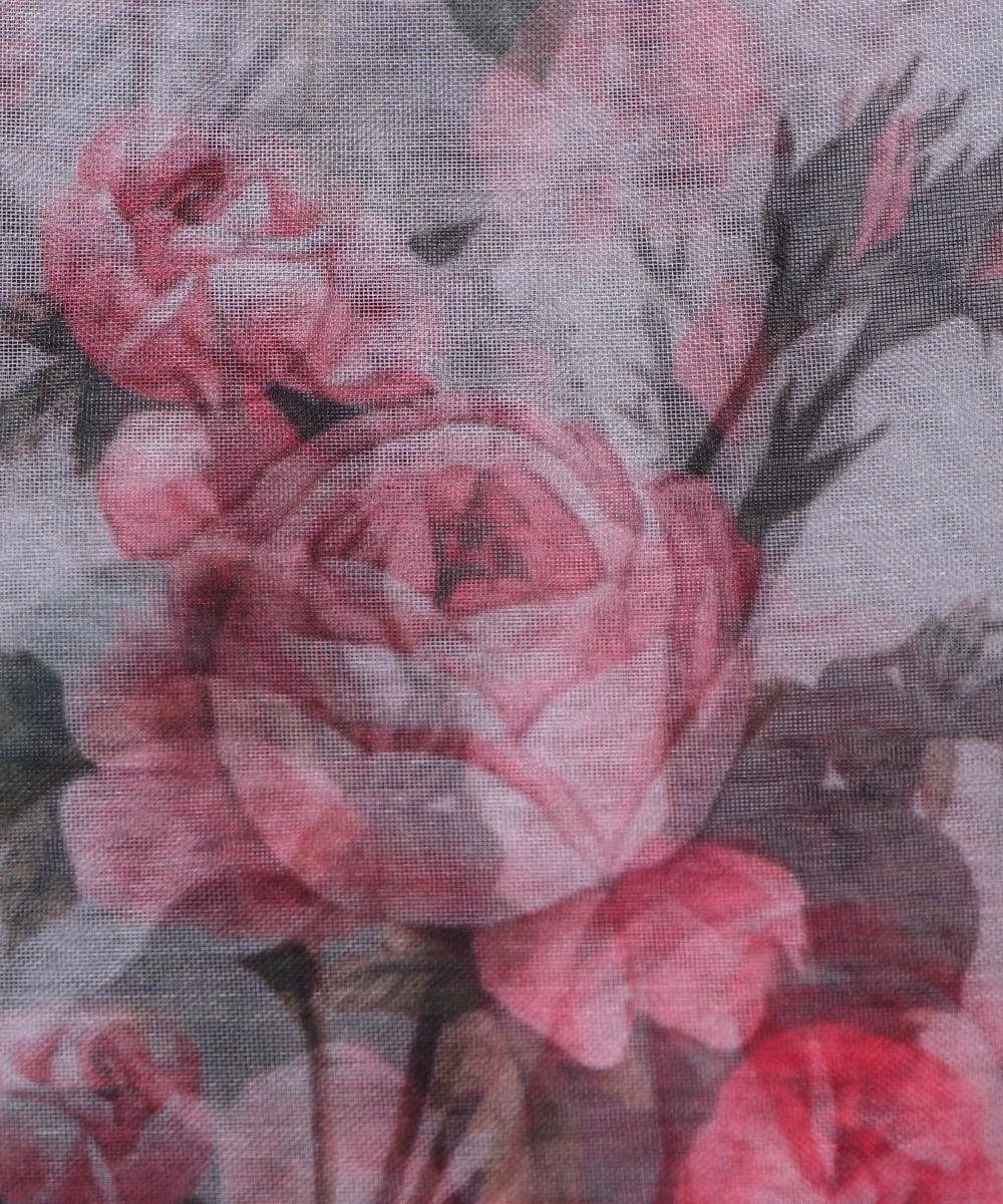 White Colour Floral Print Organza Silk Fabric